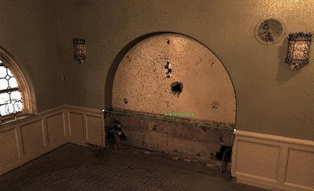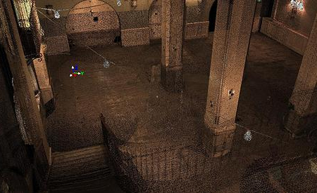 Black and white point cloud with X,Y,Z values. After imaging, the viewer’s position on the environment is no longer restricted to any given point. Examinations from any angle or view are now possible. Scaled images can be exported as well as snapshots, animations and raw data. However, the point cloud remains at a 1:1 scale allowing for accurate measurements and virtual site walks.
